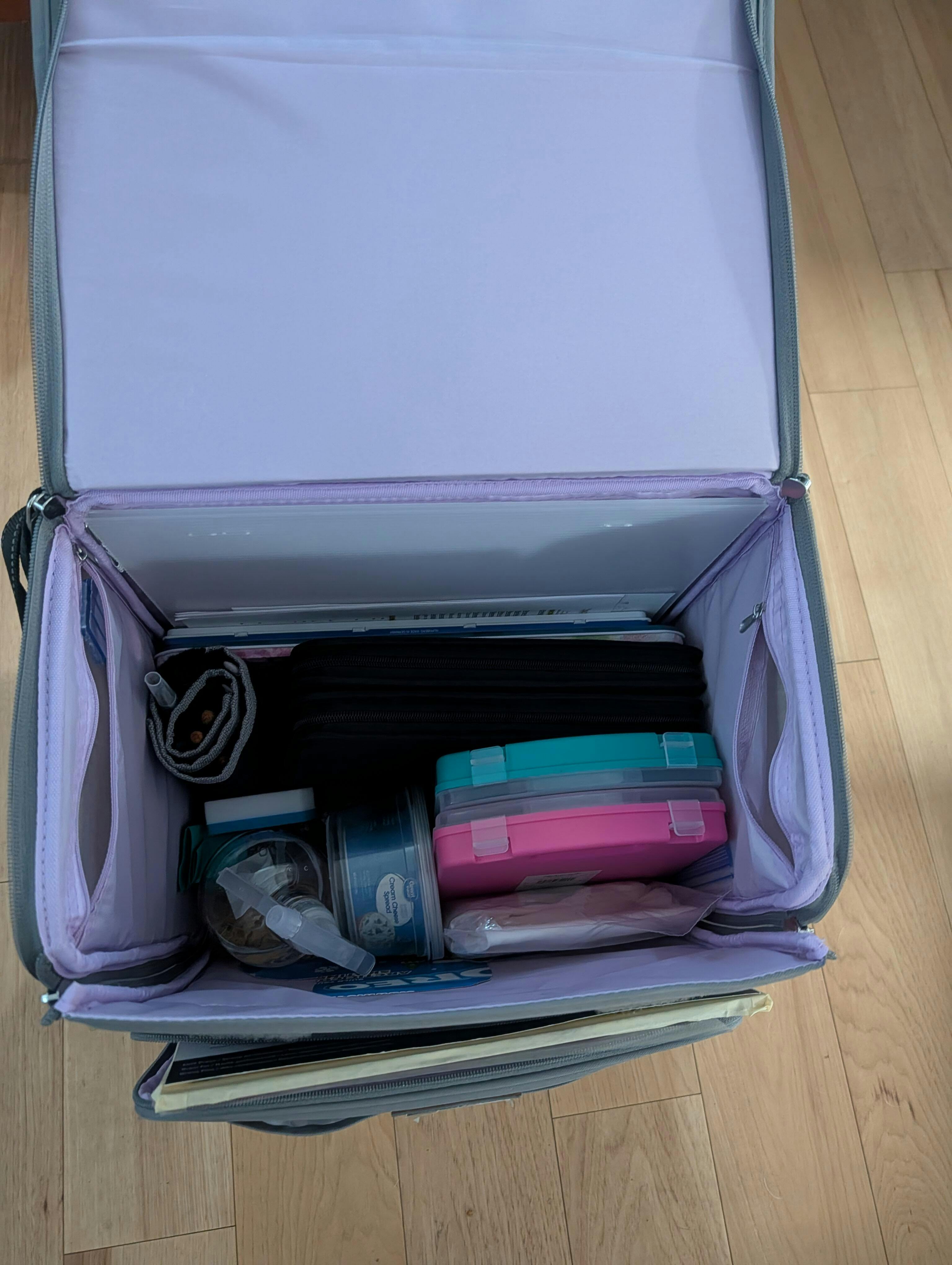 The Everything Mary Collapsible Rolling Craft Bag is the ultimate storage solution for any storage need you may have. This rolling organizer cart is constructed with durable polyester and features premium zippers, piping, and an Everything Mary emblem. 17 total storage spaces are built into this scrapbook storage case for all of your tools, sewing notions, or other supplies. The main compartment on this rolling craft organizer is perfect for scrapbooking IRIS boxes, paper, crafts, containers, and so much more! This scrapbook rolling tote features a telescoping locking handle and a durable wheelset for secure craft storage. The Everything Mary Collapsible Rolling Craft Bag was made with crafters in mind.
