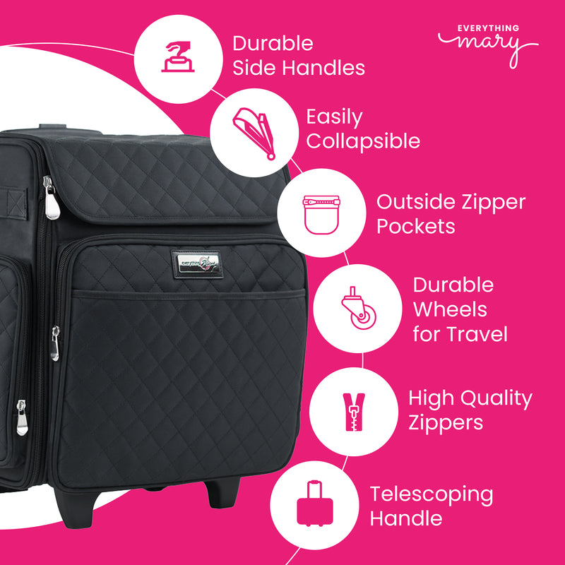 Collapsible Rolling Scrapbook & Featherweight Case, Black Quilted